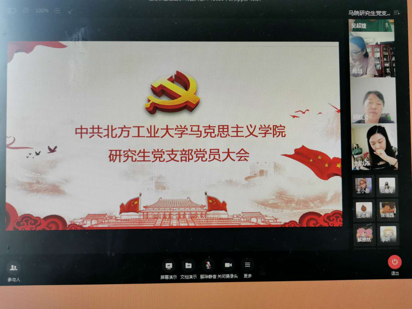 6月18日上午,澳门十大信誉网赌大全研究生党支部通过视频会议,召开讨论关于预备党员郝璞琦、吴超婕两位同志的转正会议。参加本次会议的人员有校党委副书记田红芳、党支部书记刘以沛、支部全体党员同志,及支部全体积极分子。