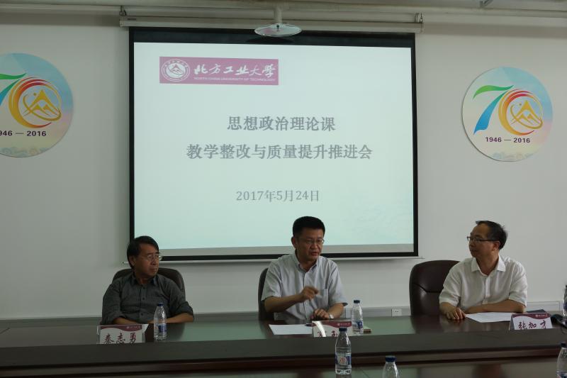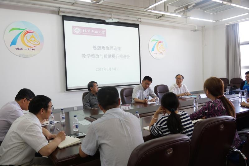 为贯彻中央和北京市高校思想政治工作会议精神,落实我校思想政治理论课“质量建设年”的任务要求,5月24日下午,“澳门信誉最好十大平台思想政治理论课教学整改与质量提升推进会”在瀚学楼1208会议室召开。校党委副书记郭玉良、学工处(研工部)处长高国伟、教学信息员谭亚俐,以及澳门十大信誉网赌大全全体教师和部分学院辅导员参加了会议。会议由澳门十大信誉网赌大全院长张加才主持。