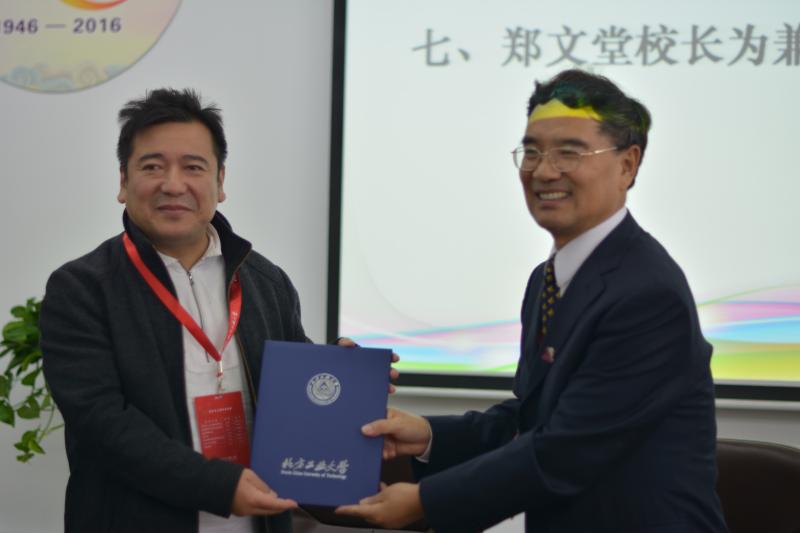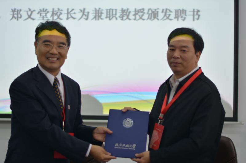 (郑文堂校长为孙伟平教授颁发兼职教授聘书)