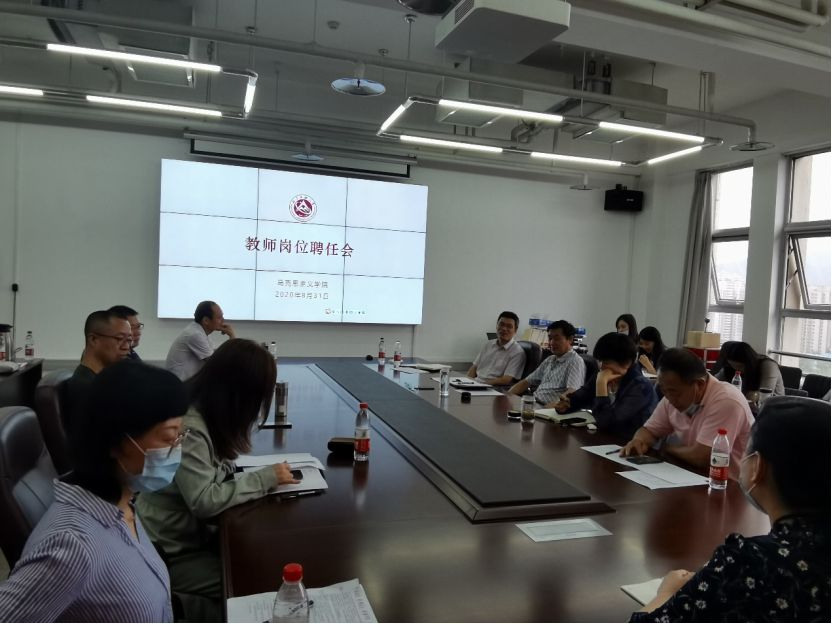 为科学规划学科发展,完善学科队伍建设,提高培养人才的质量,贯彻落实高校立德树人的根本任务,8月31日上午,澳门十大信誉网赌大全在瀚学楼1208会议室召开教师岗位任聘会,院长袁本文、副院长张茂林以及各教研室所有教师参加会议。