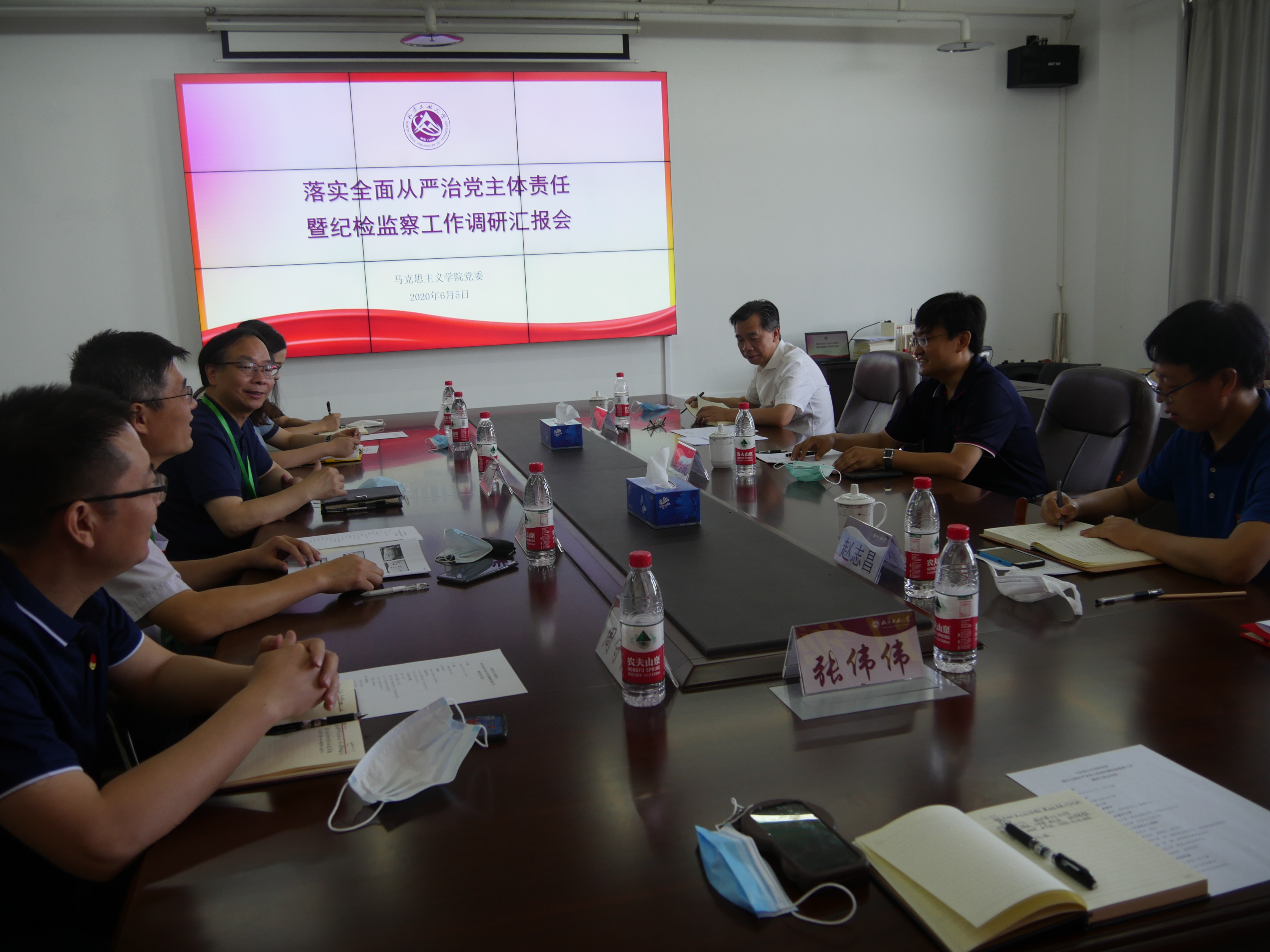6月5日上午9点,以校纪委书记马春成为组长的校纪委工作组一行3人,就十大信誉网赌履行全面从严治党主体责任暨纪检监察工作情况进行调研。院党委副书记张茂林主持汇报会。院长张加才,党委委员周守高、刘以沛,教师代表温泉出席汇报会。