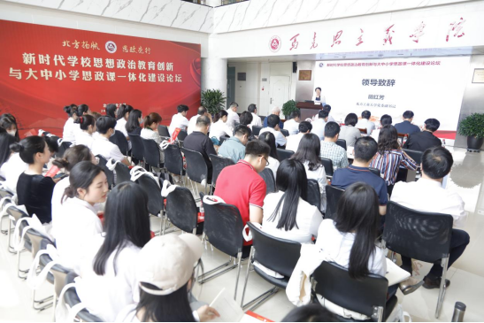 5月14日,新时代学校思想政治教育创新与大中小学思政课一体化建设论坛在瀚学楼12层大厅举行。本次论坛作为“北方·扬帆”澳门信誉最好十大平台科技创新暨科研成果转化大会的分论坛之一,旨在深入学习贯彻习近平总书记在学校思想政治理论课教师座谈会上的重要讲话精神,全面落实中央、北京市关于思政课改革创新和加强澳门十大信誉网赌大全建设的部署要求,切实推动大中小学思政课一体化建设取得高质量发展,进一步提升学校落实立德树人根本任务的能力与水平。
