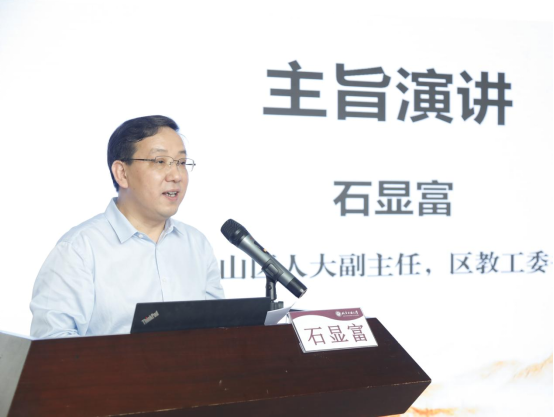 石景山区人大常委会副主任、区教工委书记石显富,大兴区教委德育科科长姜苗分别作主旨演讲。石显富就澳门信誉最好十大平台一直以来对石景山区基础教育的支持表示感谢。他介绍了石景山区教育系统以北京市大中小幼一体化德育实践研究示范区建设为载体,构建横向融通、纵向衔接的幼小中高一体化联动体系,坚持守正创新、凝心聚力,全面提升各学段思政课课程建设与师资质量,强化学高从教、身正示范,全力打造高素质思政教师队伍等方面的做法与成效。姜苗分享了大兴区教育两委坚持党的全面领导,深入思考大思政课“为何一体化”“何为一体化”“如何一体化”等重大问题,党政齐抓共管,健全机制,打破壁垒,用党的创新理论不断推进“大思政课”一体化建设的有效经验。