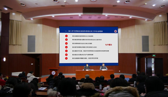 为深入学习贯彻习近平文化思想,坚持以党的创新理论赋能澳门十大信誉网赌大全事业发展,12月21日,校党委副书记田红芳以“深入学习习近平文化思想 做好新时代宣传思想文化工作”为题,为澳门十大信誉网赌大全全体师生讲授了一堂专题党课。党课报告会由学院党委书记张茂林主持。