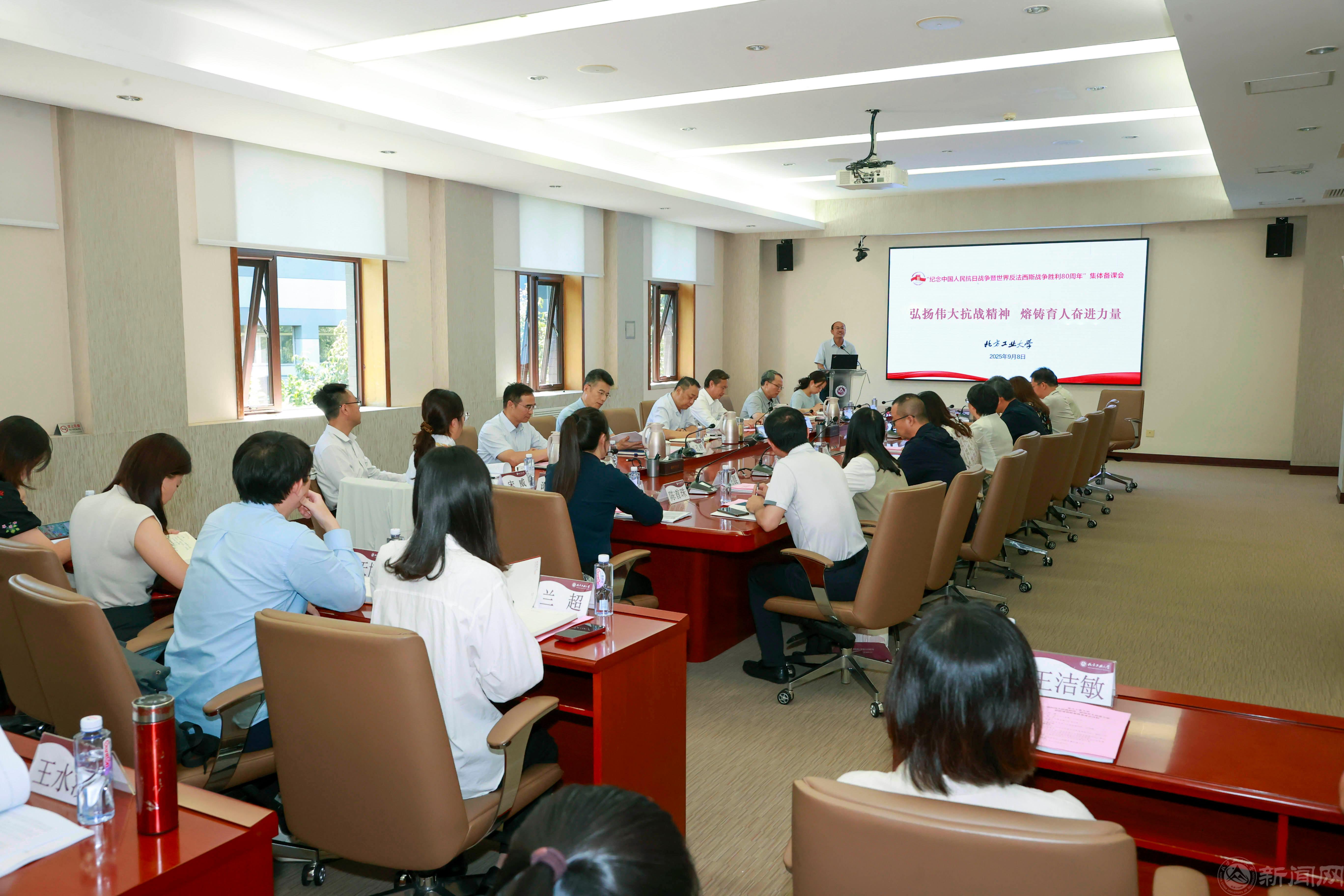 为纪念中国人民抗日战争暨世界反法西斯战争胜利80周年,深入学习贯彻习近平总书记关于“弘扬伟大抗战精神”的重要论述,将伟大抗战精神有效融入思政课教育教学,9月8日下午,学校组织召开思政课教师集体备课会。党委书记刘军,党委副书记姜孔桥,党委常委、副校长陈家庆参加会议。备课会由澳门十大信誉网赌大全副院长王润稼主持。
