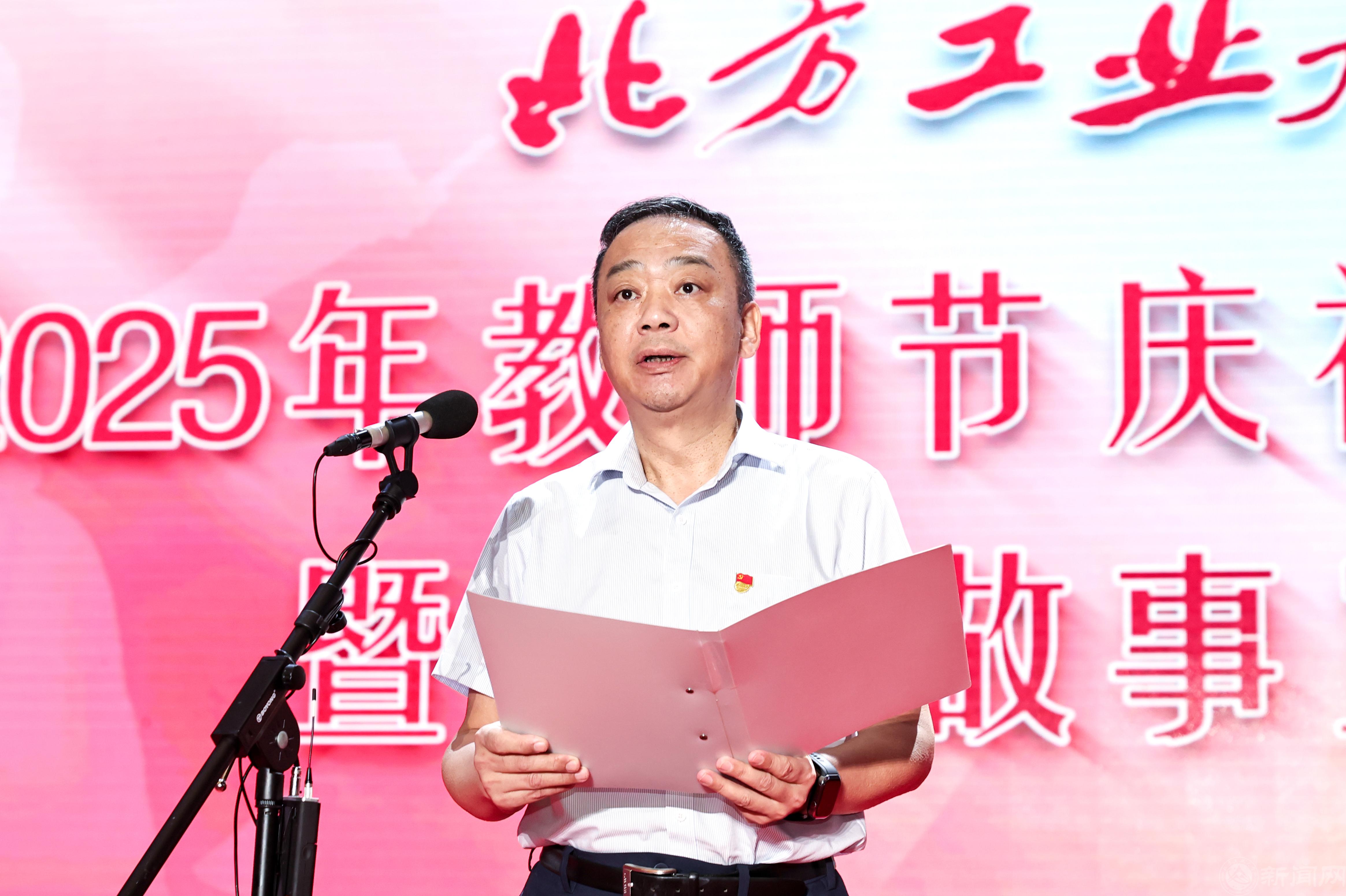 党委书记刘军致辞。他代表学校党委和行政,向全体教职员工和离退休教师致以节日问候和崇高的敬意。刘军表示,在过去的一年里,学校以教育家精神为引领,用扎实工作成绩回答了“强国建设,工大何为”这一时代命题。面向未来,刘军向全体教师提出三点希望:一是坚持以文化人,弘扬尊师重教优良传统。将教育家精神的时代内涵深度融入学校文化建设的全过程,强化价值引领,持续涵养高尚师德,让“学为人师、行为世范”成为每一位教师的自觉追求,树立和维护好“工大良师”的良好形象。二是强化组织担当,做好教师的引领与服务工作。主动倾听教师心声,切实帮助解决实际困难,营造安心从教、舒心从教的良好环境,特别是做好青年教师的“引路人”,助力他们成长成才。三是坚守育人初心,争做新时代的“大先生”。希望全体教师以优秀典型为榜样,牢记为党育人、为国育才的使命,不断提升育人能力和专业水平,努力成为学生为学、为事、为人的示范,当好学生成长路上的引路人。