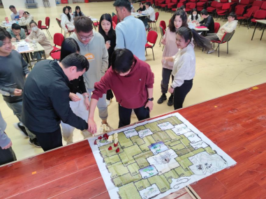 活动选用的是经典团队拓展项目——“沙漠淘金”,参加活动的学生被随机分为八组,每组成员经过认真商讨,精心设计路线,克服重重困难,顺利完成“淘金”任务。通过活动,使大家在日常学习生活中存在的问题不知不觉的凸显了出来,发掘出了问题的实质,考验了学生们的战略性、战术性和合作性。