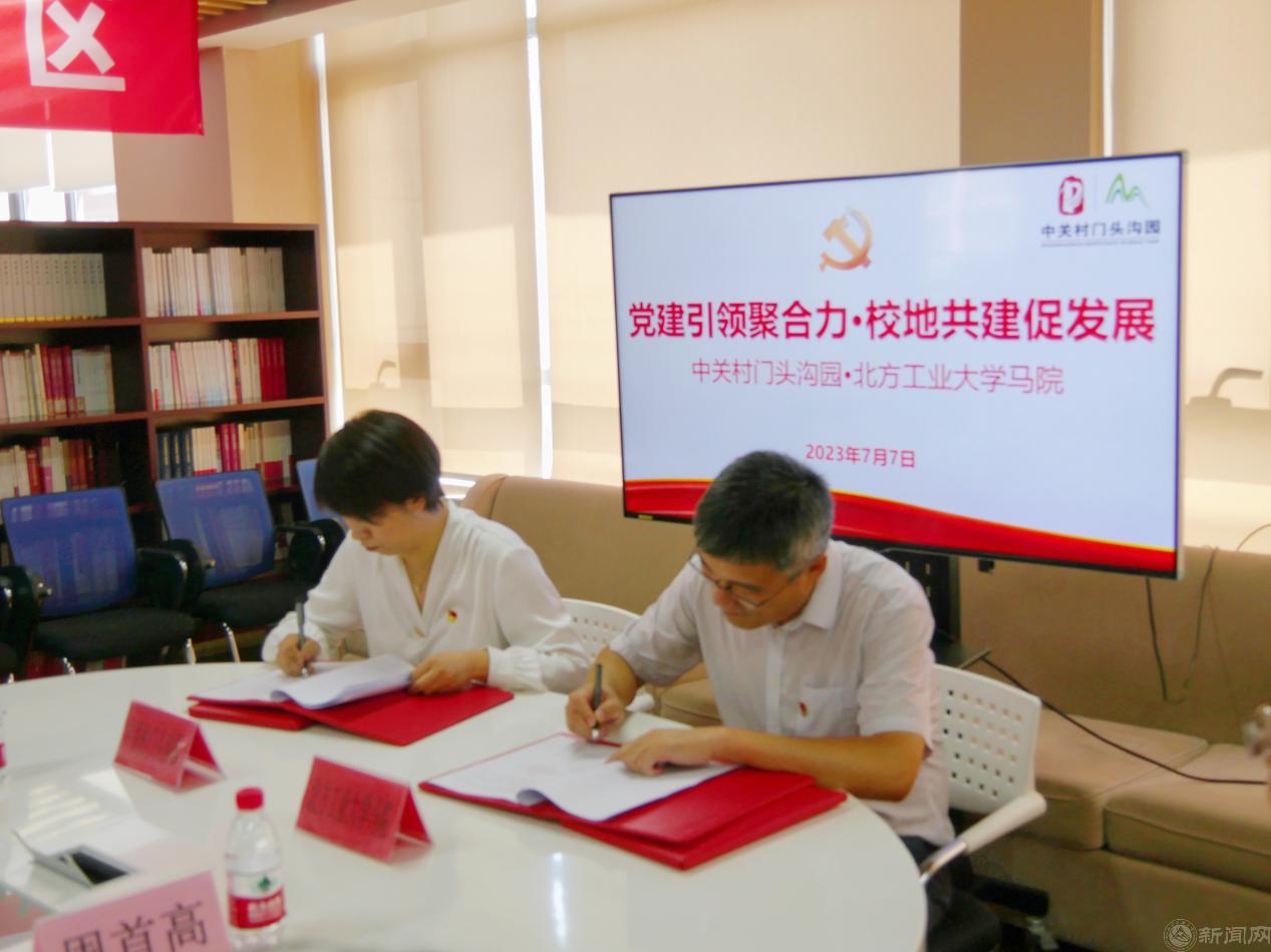 7月7日下午,中关村门头沟园与十大信誉网赌“党建引领聚合力•校地共建促发展”共建活动暨合作共建签约仪式在中关村门头沟园党群服务中心举行。中关村门头沟园党工委副书记侯晓倩、团工委书记李琰、基层党组织书记代表,十大信誉网赌党委书记张茂林、院长袁本文以及学院教师代表共同参加活动。